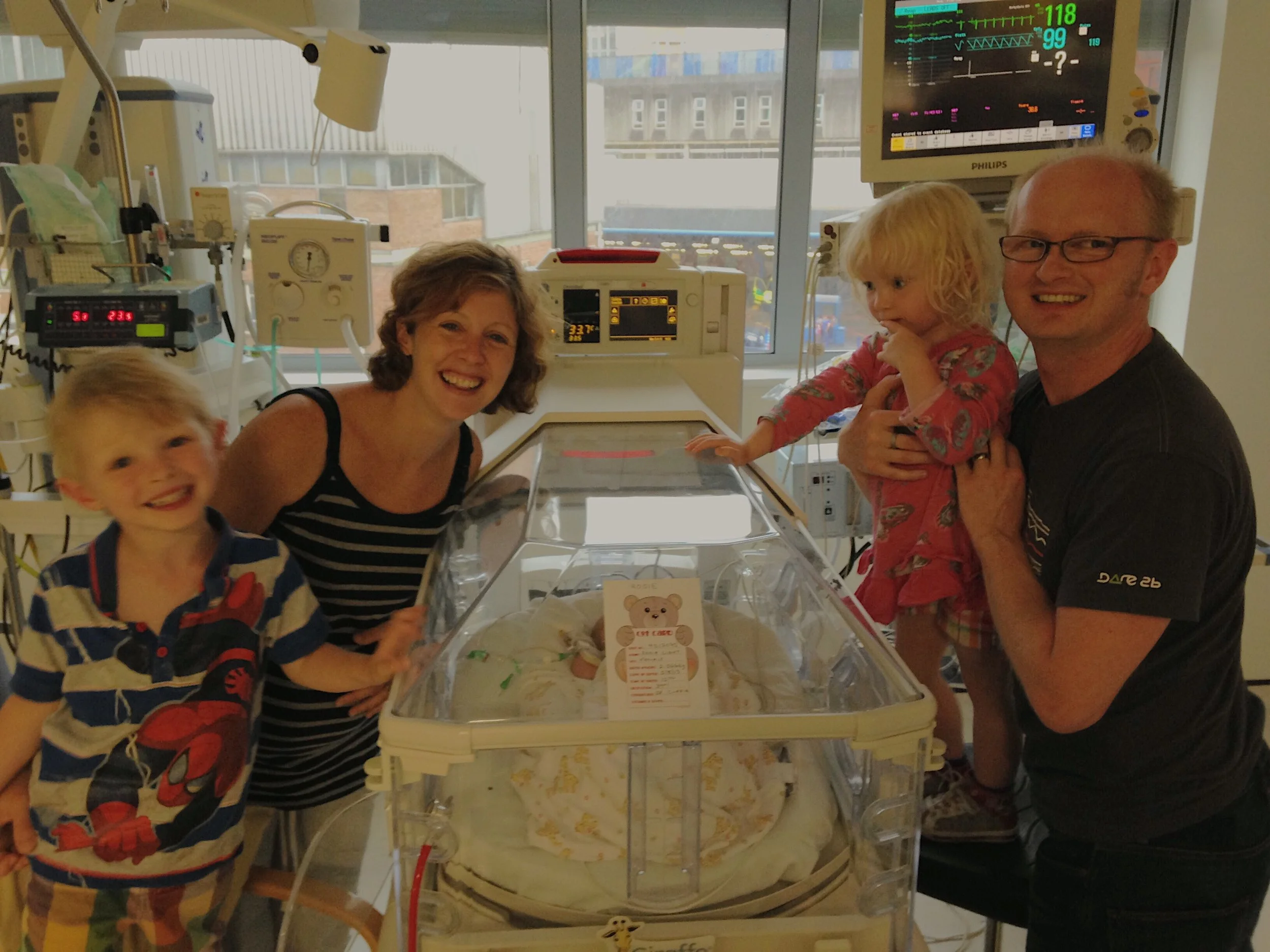 When we were allowed back in to see her after the op she had breathing apparatus and was being monitored for all her vital signs. We had been allowed to hold her at the very beginning but now she was too poorly. I stayed in the ward and Nick looked after our other 2 children at home. It was very difficult not being able to feed her and seeing that she was hungry. I was expressing breast milk and a little pile of tiny bottles was building up in the hospital freezer but I couldn’t meet her needs for food.